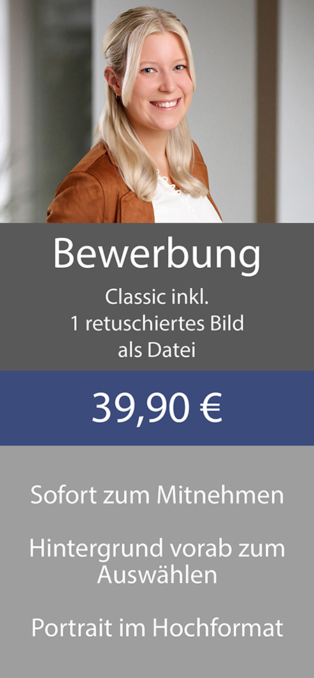 Eine kleine Übersicht unserer verschiedenen Bewerbungs- und Businessshootings findest du direkt hier.